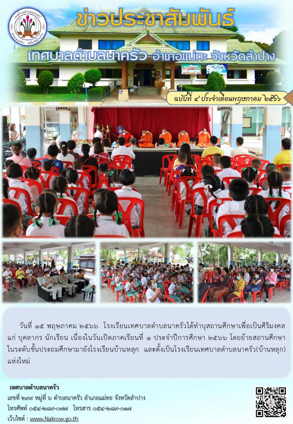 โรงเรียนเทศบาลตำบลนาครัวได้ทำบุสถานศึกษาเพื่อเป็นศิริมงคลแก่ บุคลากร นักเรียน เนื่องในวันเปิดภาคเรียนที่ 1 ประจำปีการศึกษา 2566 [15 พฤษภาคม 2566]
