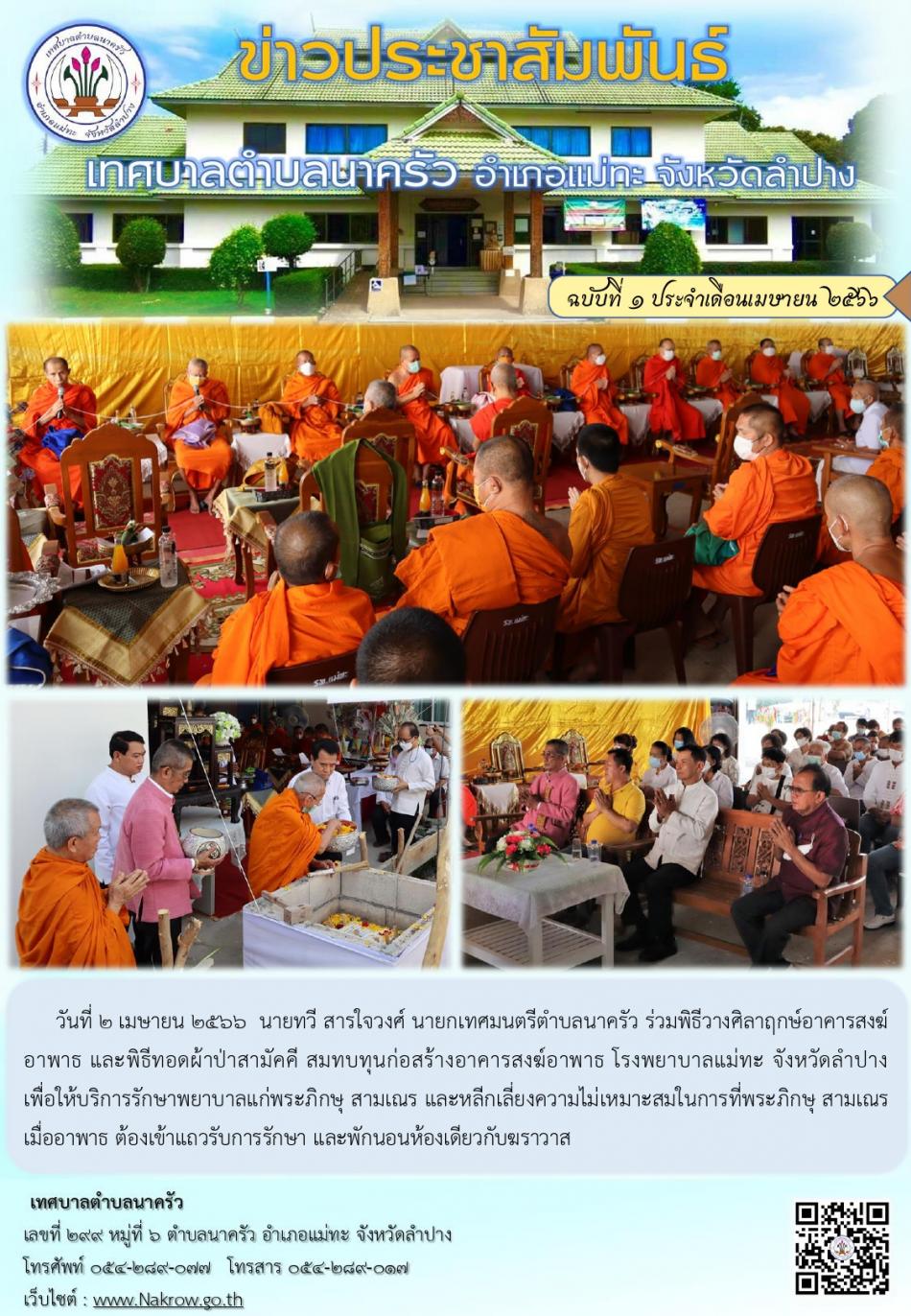 นายทวี สารใจวงศ์ นายกเทศมนตรีตำบลนาครัว ร่วมพิธีวางศิลาฤกษ์อาคารสงฆ์อาพาธ และพิธีทอดผ้าป่าสามัคคี สมทบทุนก่อสร้างอาคารสงฆ์อาพาธ โรงพยาบาลแม่ทะ [3 เมษายน 2566]
