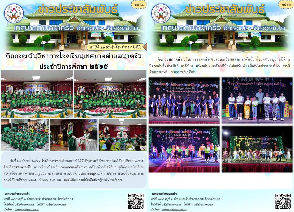 นายทวี สารใจวงศ์ นายกเทศมนตรีตำบลนาครัว ร่วมกับแขวงทางหลวงชนบทลำปาง ลงพื้นที่สำรวจถนนเพื่อจะได้ดำเนินการขยายผิวจราจรเส้นทางจากสามแยกร้านอินชุม – ตลาดสด บ้านน้ำโท้ง และถนนสายบ้านหนองถ้อย – บ้านนากว้าว ... [20 มีนาคม 2566]