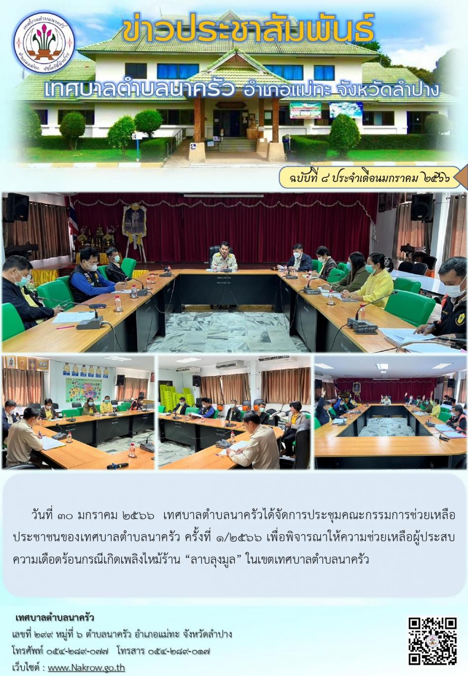 ประชุมคณะกรรมการช่วยเหลือประชาชนของเทศบาลตำบลนาครัว ครั้งที่ 1/2566 เพื่อพิจารณาให้ความช่วยเหลือผู้ประสบความเดือดร้อนกรณีเกิดเพลิงไหม้ร้าน “ลาบลุงมูล” [30 มกราคม 2566]
