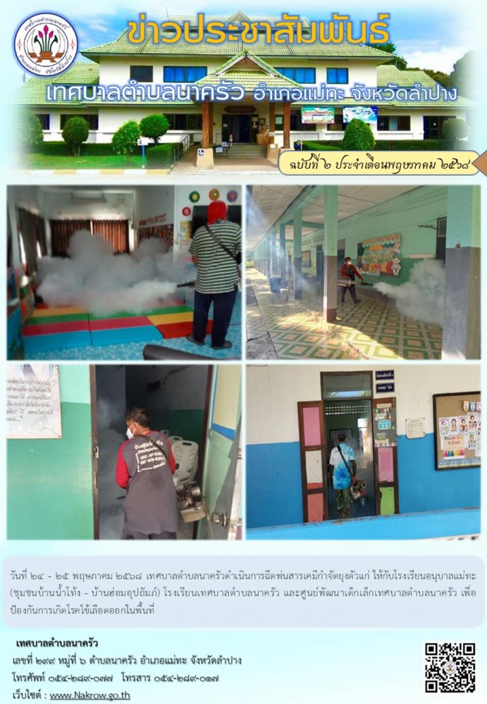 การฉีดพ่นสารเคมีกำจัดยุงตัวแก่ ให้กับโรงเรียนอนุบาลแม่ทะ [26 พฤษภาคม 2568]