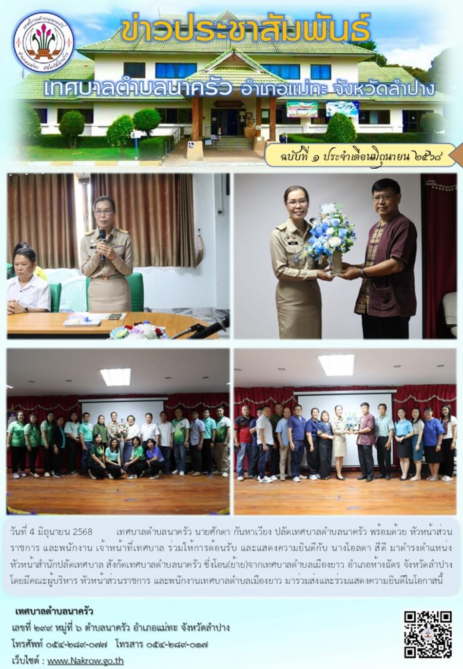 ร่วมให้การต้อนรับ และแสดงความยินดีกับ นางไอลดา สีดี มาดำรงตำแหน่ง หัวหน้าสำนักปลัดเทศบาล [4 มิถุนายน 2568]