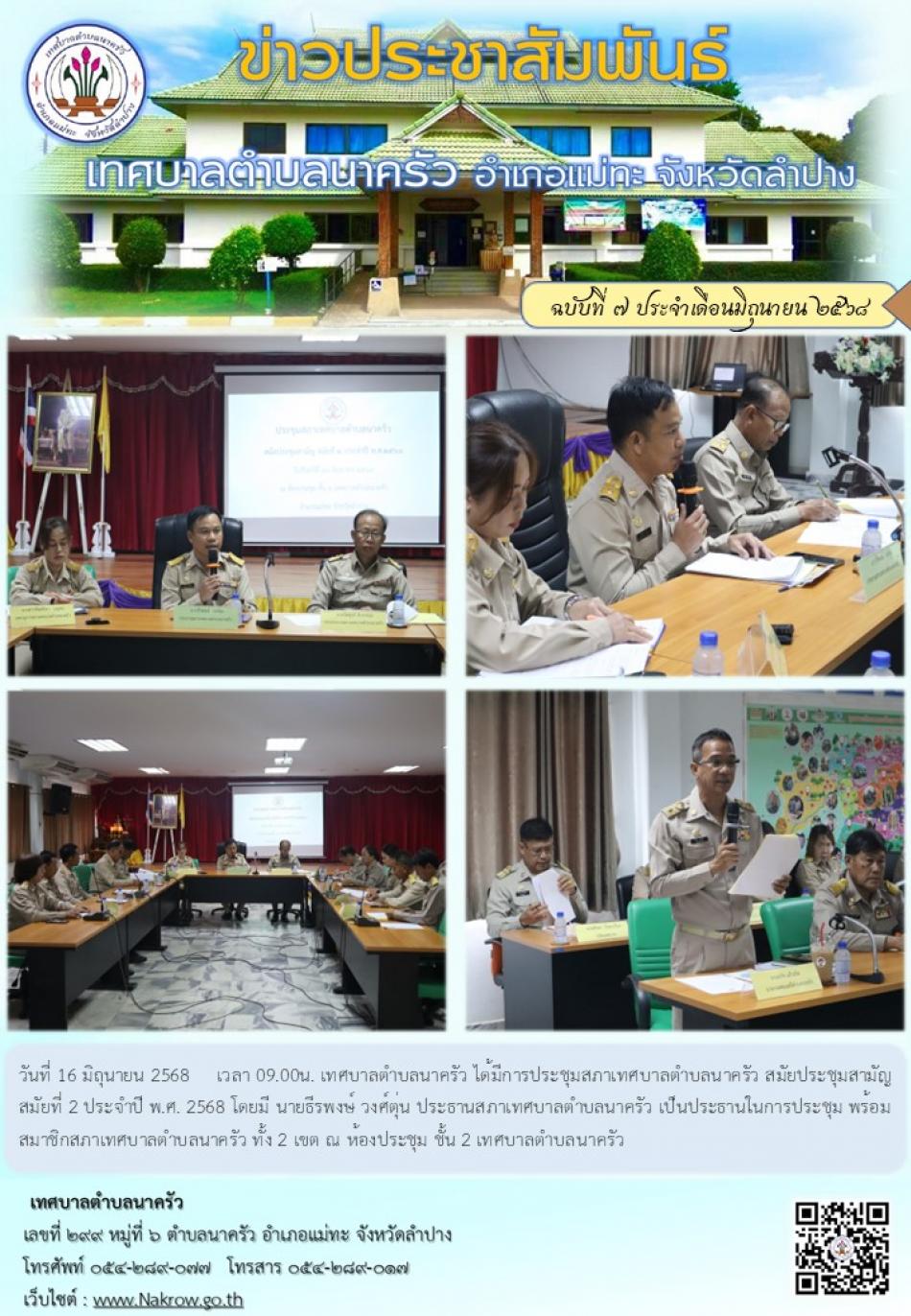 ประชุมสภาเทศบาลตำบลนาครัว สมัยประชุมสามัญ สมัยที่ 2 ประจำปี พ.ศ. 2568 [16 มิถุนายน 2568]
