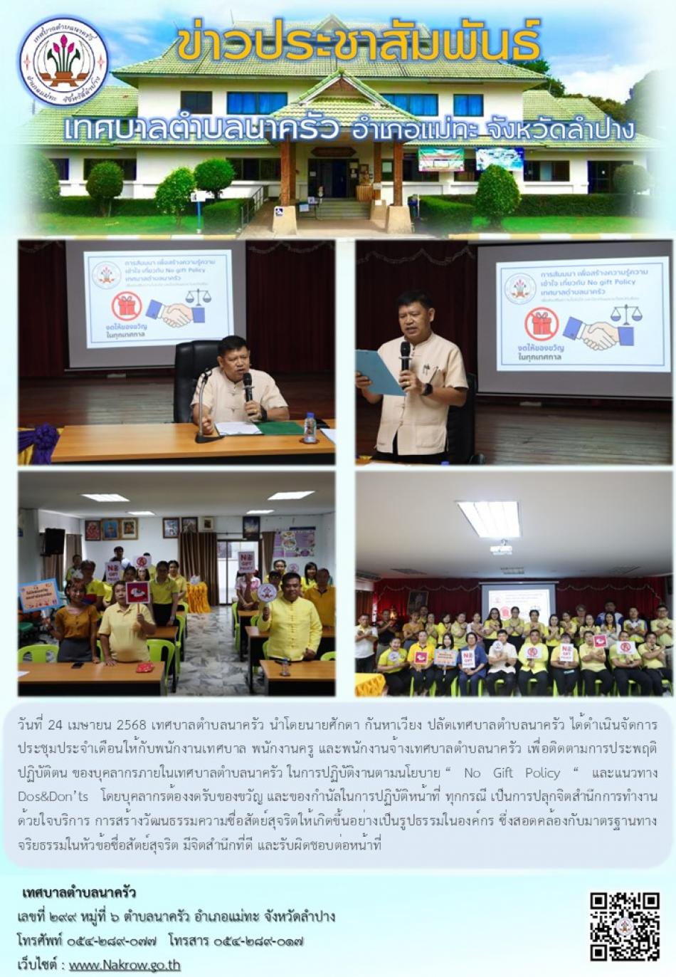 การปฏิบัติงานตามนโยบาย “ No Gift Policy “ และแนวทาง Dos&Don’ts [24 เมษายน 2568]