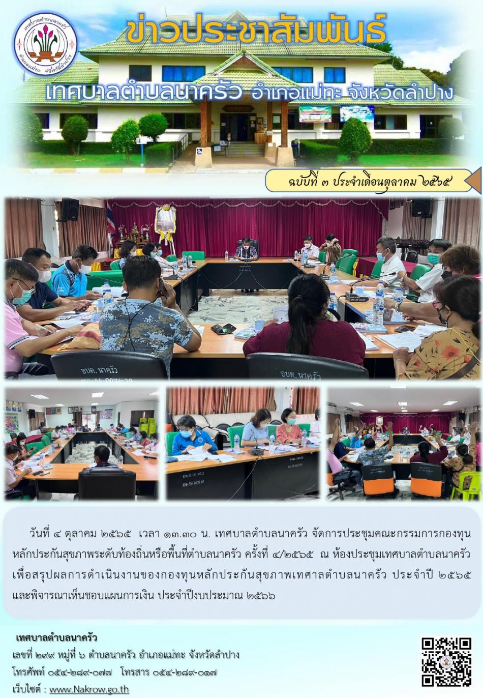 การประชุมคณะกรรมการกองทุนหลักประกันสุขภาพระดับท้องถิ่นหรือพื้นที่ตำบลนาครัว ครั้งที่ 4/2565 [4 ตุลาคม 2565]