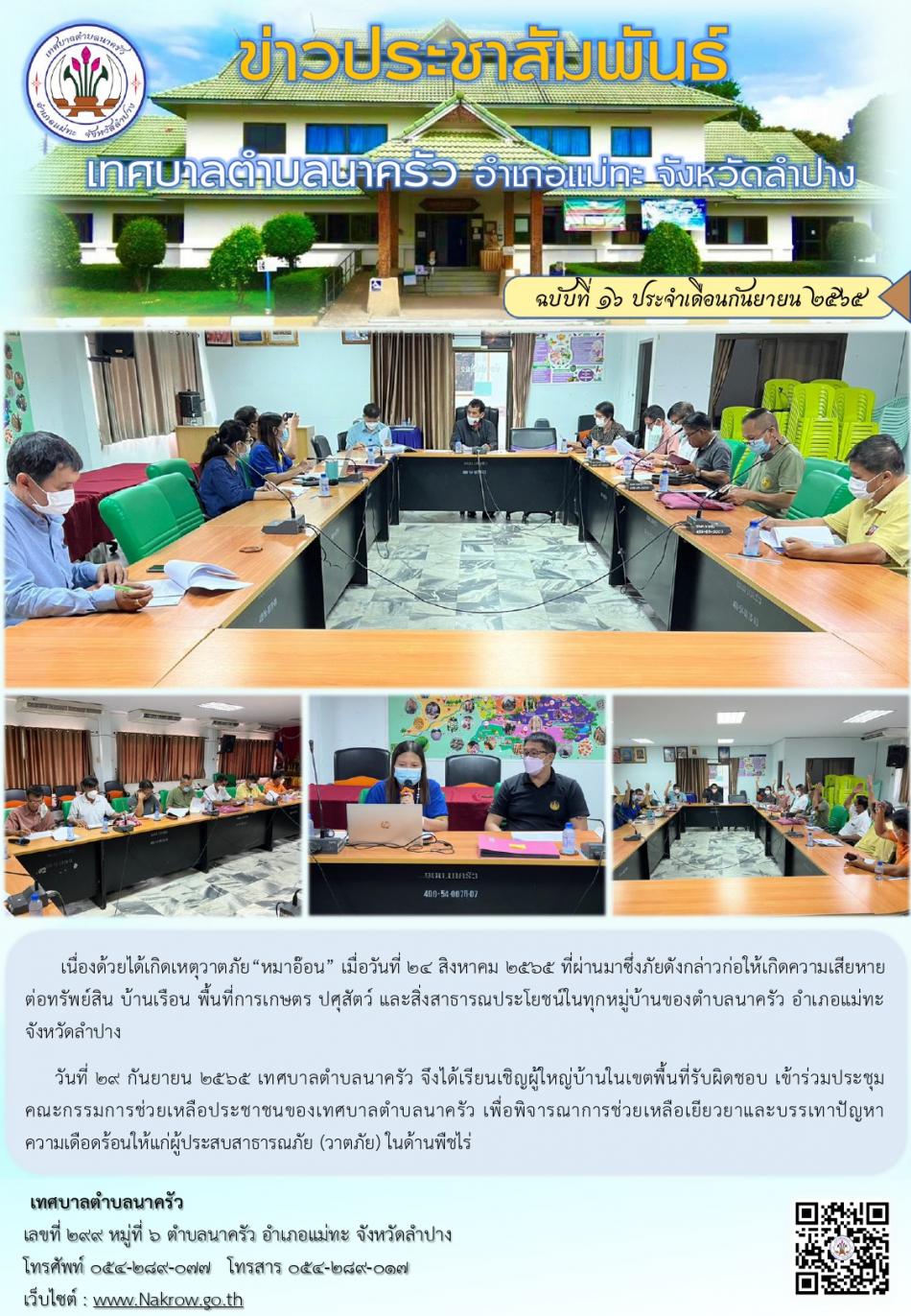 การประชุมคณะกรรมการช่วยเหลือประชาชนของเทศบาลตำบลนาครัว เพื่อพิจารณาการช่วยเหลือเยียวยาและบรรเทาปัญหาความเดือดร้อนให้แก่ผู้ประสบสาธารณภัย (วาตภัย) ในด้านพืชไร่ [29 กันยายน 2565]