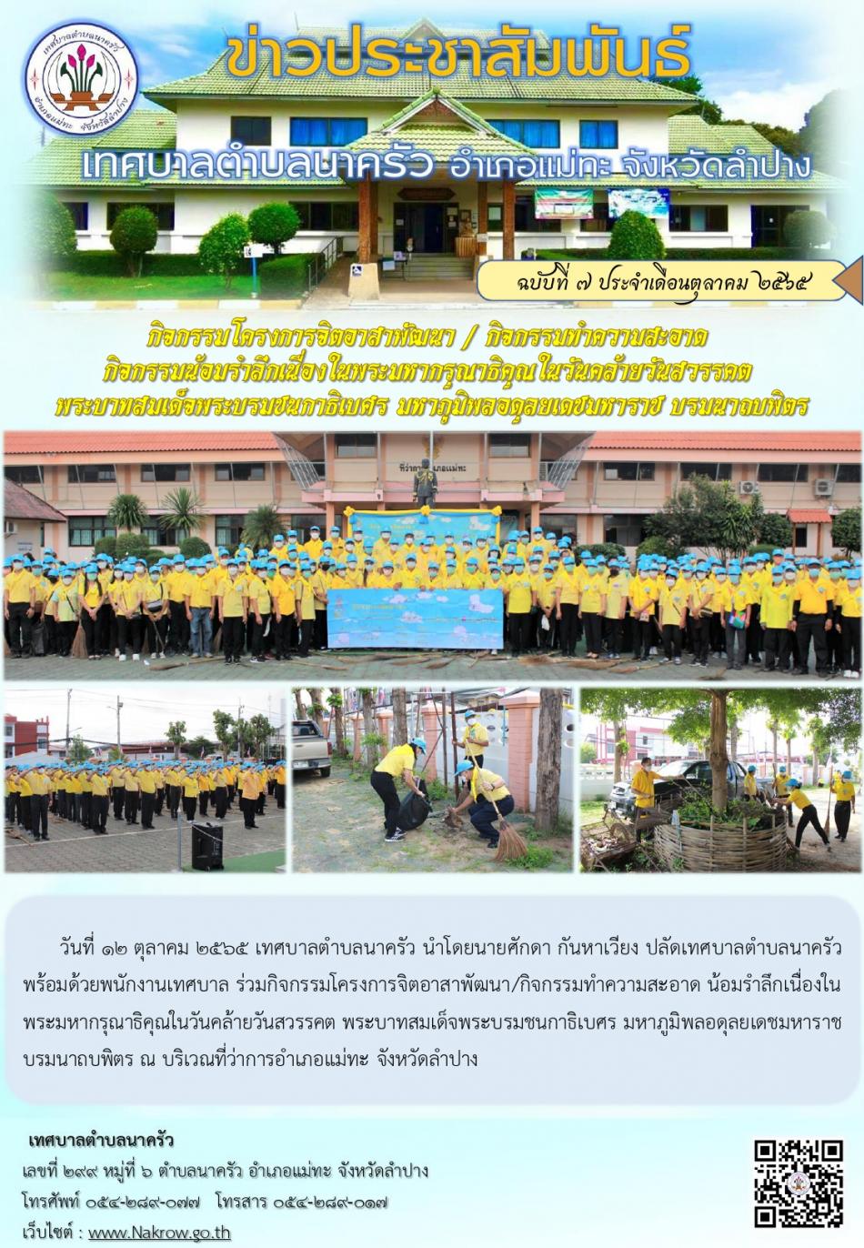 กิจกรรมโครงการจิตอาสาพัฒนา/กิจกรรมทำความสะอาด น้อมรำลึกเนื่องในพระมหากรุณาธิคุณในวันคล้ายวันสวรรคต พระบาทสมเด็จพระบรมชนกาธิเบศร มหาภูมิพลอดุลยเดชมหาราช บรมนาถบพิตร [12 ตุลาคม 2565]