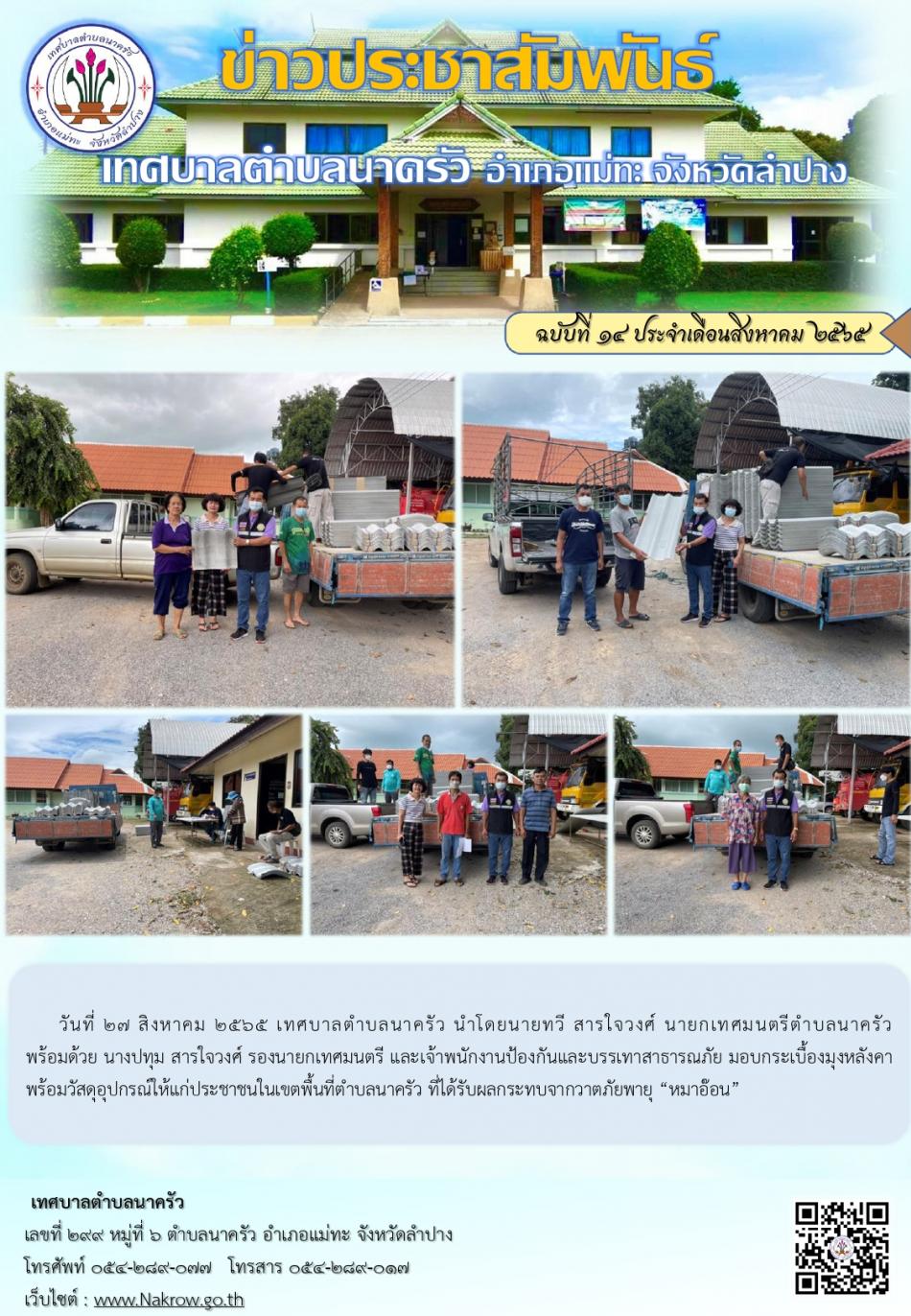 มอบกระเบื้องมุงหลังคาพร้อมวัสดุอุปกรณ์ให้แก่ประชาชนในเขตพื้นที่ตำบลนาครัว ที่ได้รับผลกระทบจากวาตภัยพายุ “หมาอ๊อน” [27 สิงหาคม 2565]