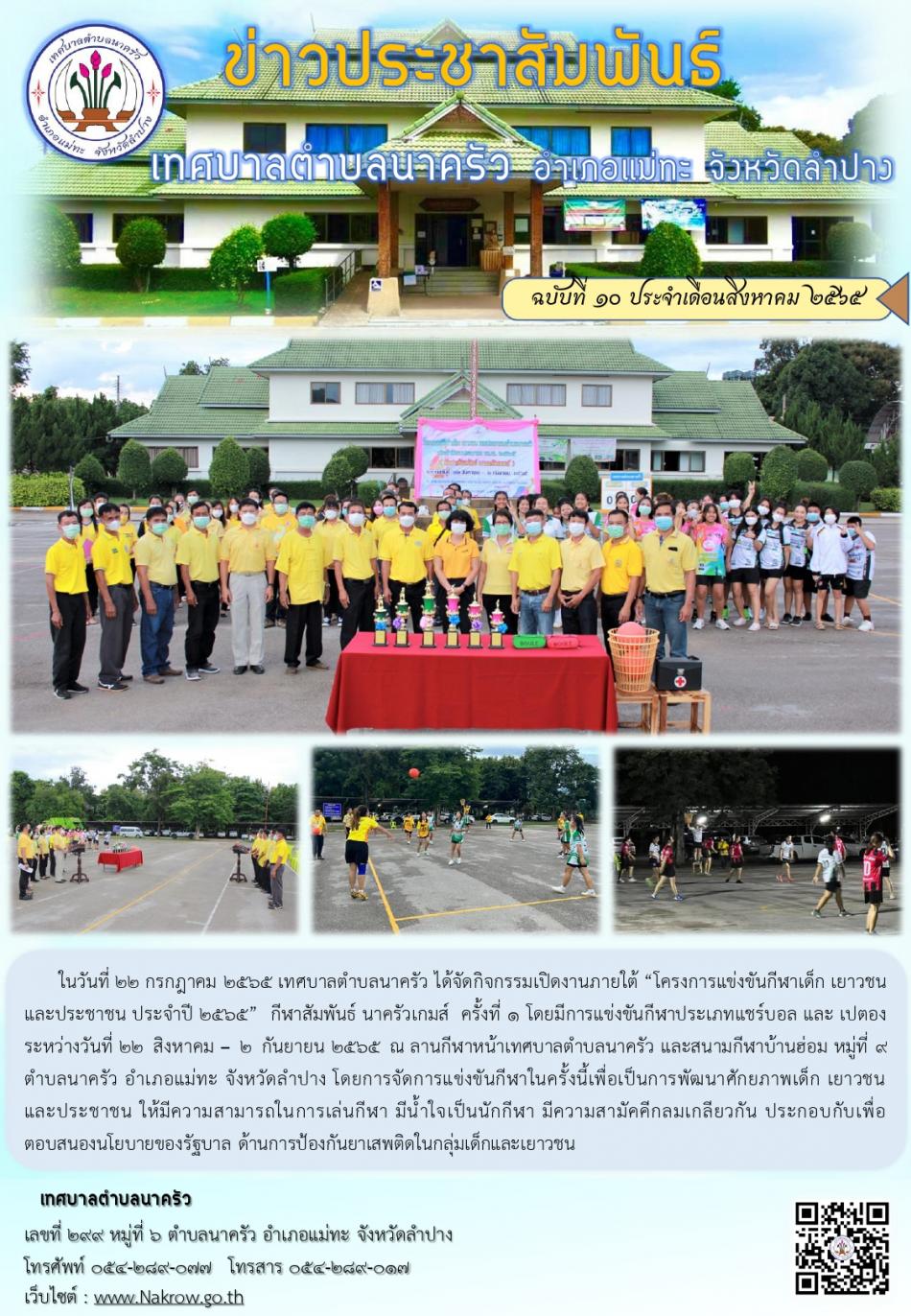 “โครงการแข่งขันกีฬาเด็ก เยาวชน และประชาชน ประจำปี 2565” กีฬาสัมพันธ์ นาครัวเกมส์ ครั้งที่ 1 [23 สิงหาคม 2565]