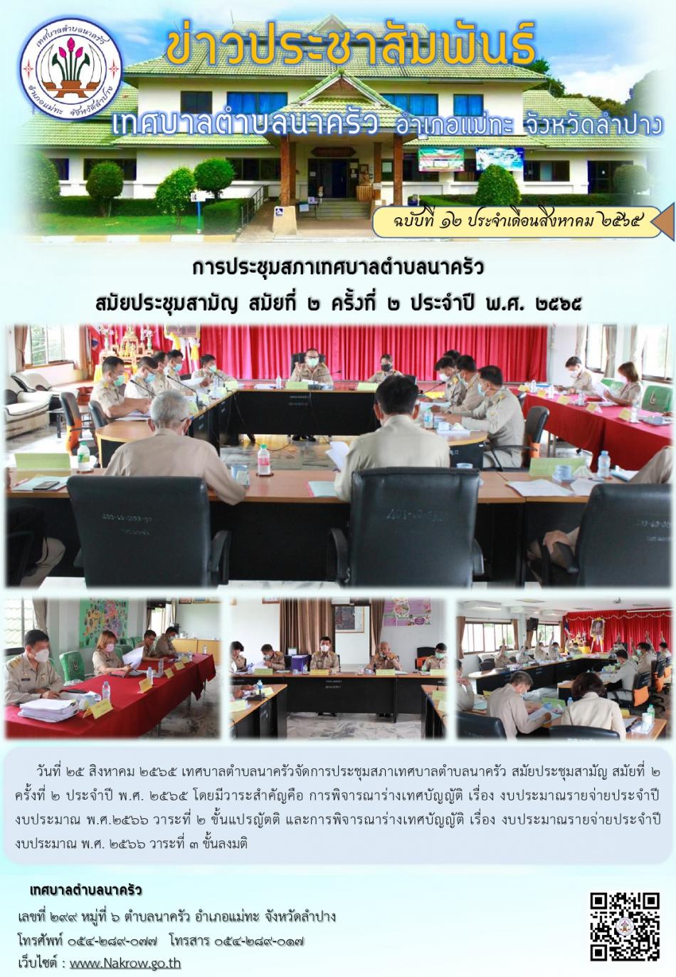 การประชุมสภาเทศบาลตำบลนาครัว สมัยประชุมสามัญ สมัยที่ 2 ครั้งที่ 2 ประจำปี พ.ศ. 2565 [25 สิงหาคม 2565]