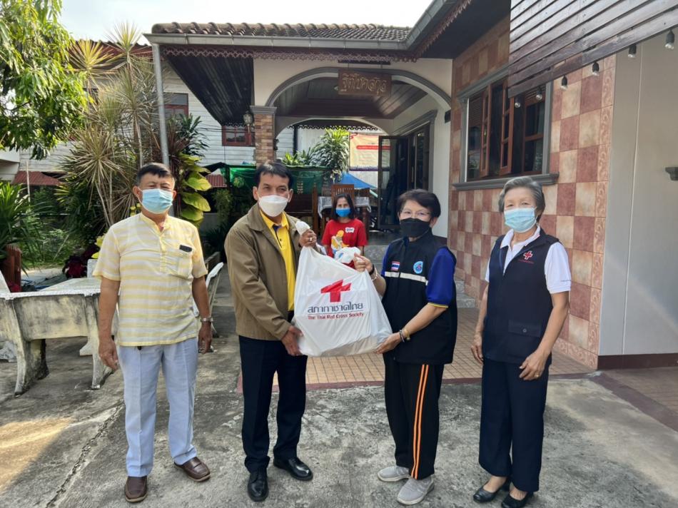 นายกเทศมนตรีตำบลนาครัวพร้อมด้วยตัวแทนกิ่งกาชาด ผู้ใหญ่บ้านและอสม. เป็นตัวแทนมอบถุงยังชีพให้กับผู้สัมผัสเสี่ยงสูง (COVID-19) จากสภากาชาดไทย [1 มีนาคม 2565]