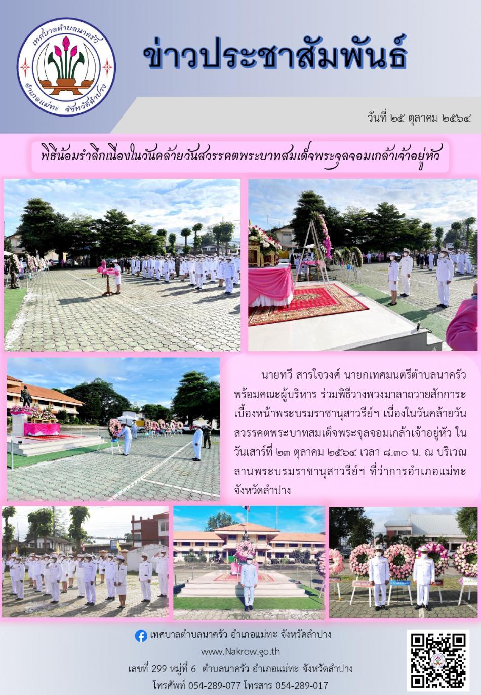 พิธีน้อมรำลึกเนื่องในวันคล้ายวันสวรรคตพระบาทสมเด็จพระจุลจอมเกล้าเจ้าอยู่หัว [25 ตุลาคม 2564]
