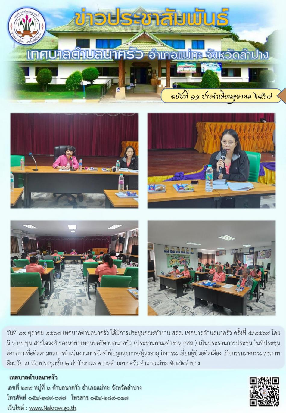 ประชุมคณะทำงาน สสส. เทศบาลตำบลนาครัว ครั้งที่ 5/2567 [29 ตุลาคม 2567]