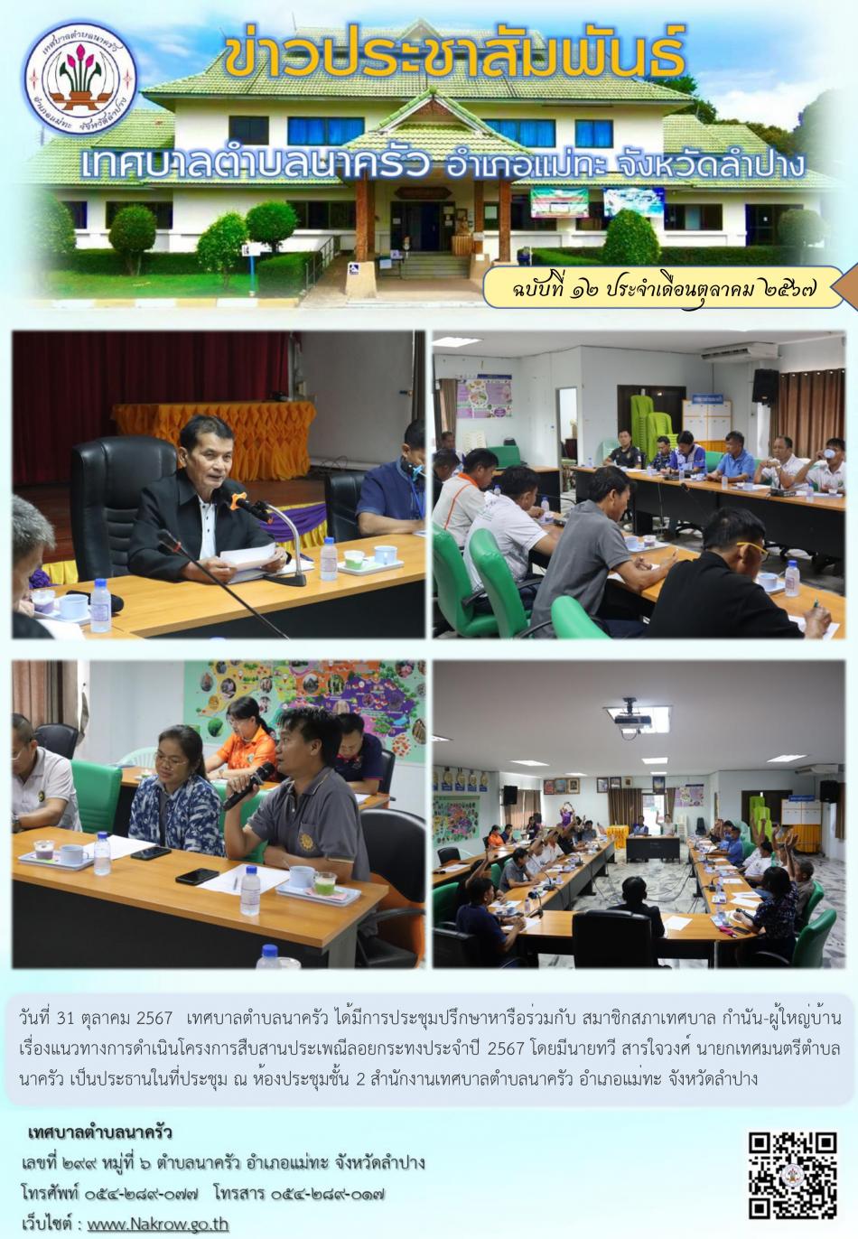 การประชุมแนวทางการดำเนินโครงการสืบสานประเพณีลอยกระทงประจำปี 2567 [31 ตุลาคม 2567]
