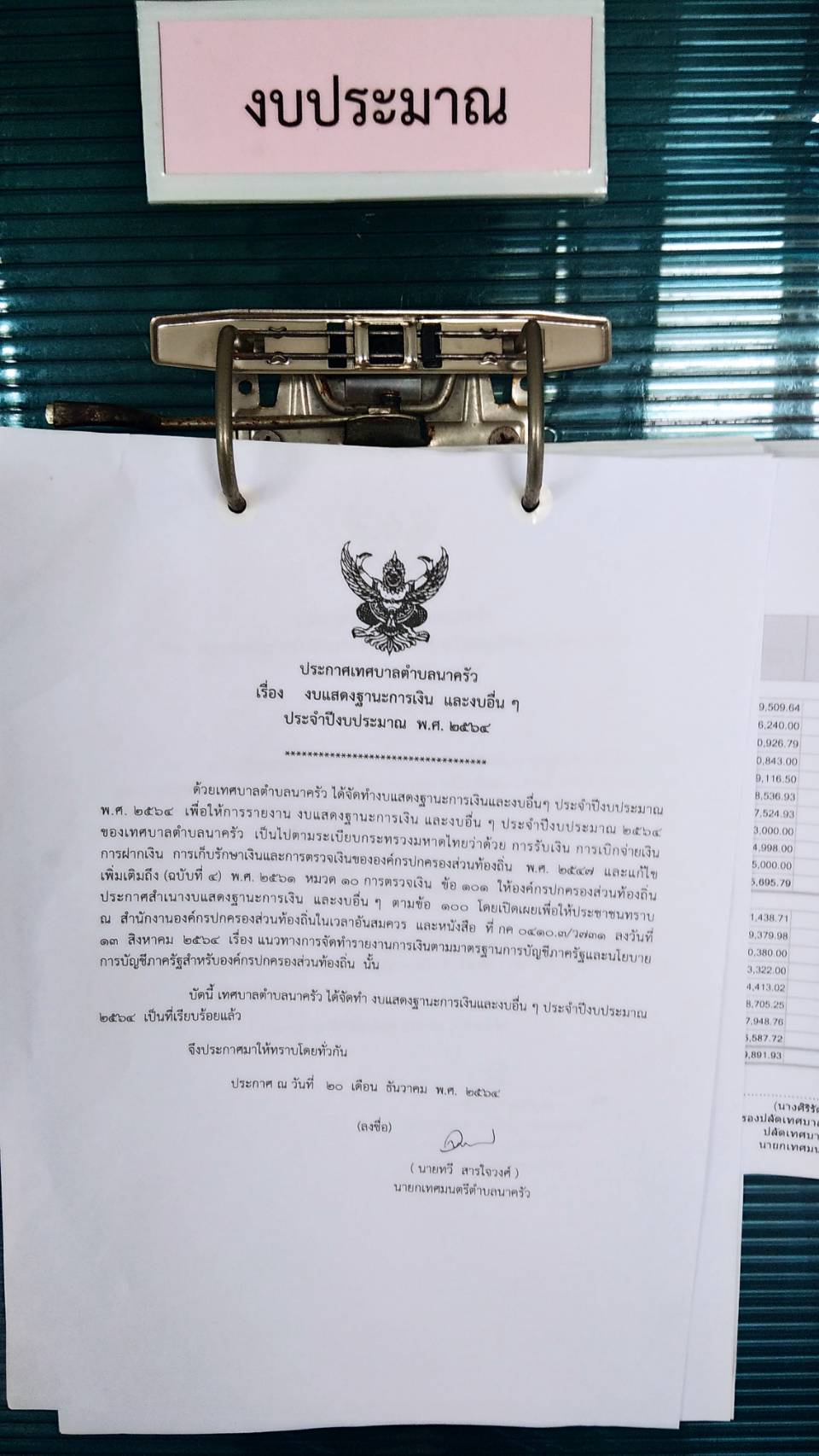 ประกาศเทศบาลตำบลนาครัว เรื่อง งบแสดงฐานะการเงิน และงบอื่นๆ ประจำปีงบประมาณ พ.ศ.2564