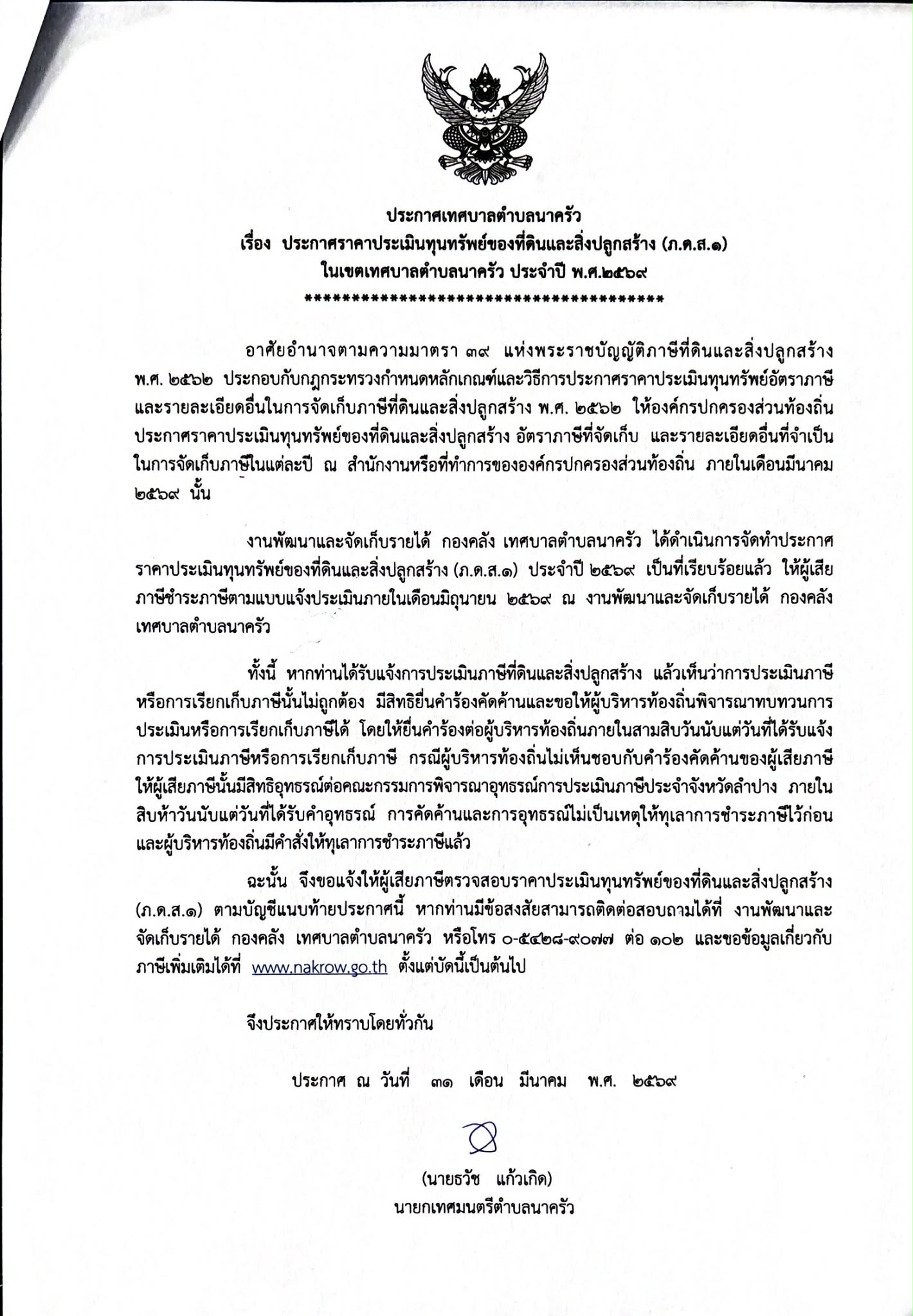 ประกาศราคาประเมินทุนทรัพย์ของที่ดินและสิ่งปลูกสร้าง (ภ.ด.ส.1)