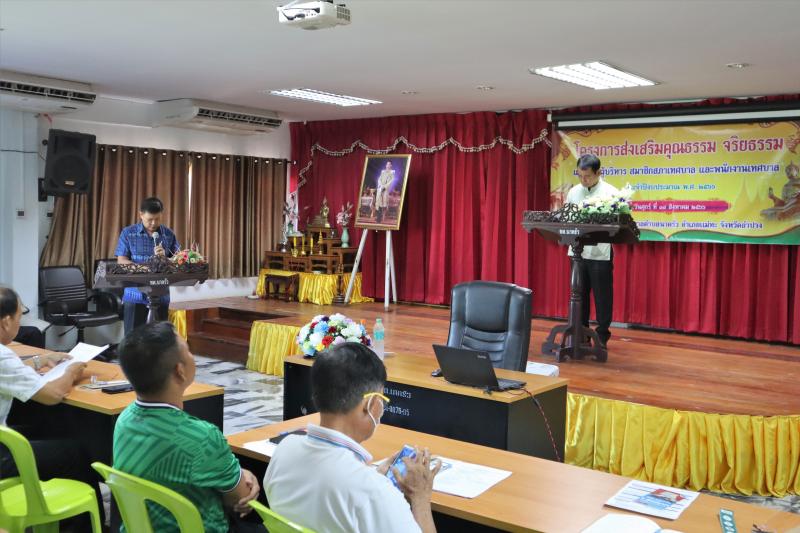 รายละเอียด : วันที่ 18 สิงหาคม 2566 นายทวี สารใจวงศ์ นายกเทศมนตรีตำบลนาครัว เป็นประธานเปิดโครงการฝึกอบรมคุณธรรม จริยธรรม แก่ผู้บริหาร สมาชิกสภา และพนักงานเทศบาลตำบลนาครัว ในการจัดโครงการครั้งนี้มีวัตถุประสงค์เพื่อให้ผู้รับการอบรมมีหลักการ และแนวทางปฏิบัติในการเสริมสร้างให้เป็นคนดี มีคุณธรรม พัฒนาคุณภาพชีวิตสังคม นำไปสู่การพัฒนาการทำงานที่ซื่อสัตย์ สุจริต โดยนำหลักของพระพุทธศาสนามาใช้ในการปฏิบัติงานให้เป็นผู้พัฒนาตนเอง พัฒนาทีมงาน และนำไปสู่การพัฒนาองค์กร ทั้งนี้ กิจกรรมในโครงการประกอบด้วย การมอบเกียรติบัตรให้กับบุคคลต้นแบบการส่งเสริมวัฒนธรรมองค์กร และคุณธรรม จริยธรรม การฟังบรรยายเรื่อง “การทำงานมีสุข ชีวิตมีสุข ด้วยคุณธรรม จริยธรรม” โดยได้รับเมตตาจาก พระมหาประพจน์สรัช ญาณธีโร เป็นผู้บรรยาย และกิจกรรมบำเพ็ญประโยชน์ ทำความสะอาดบริเวณสำนักสงฆ์พระธาตุดอยผาปูน