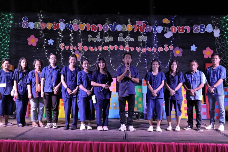 รายละเอียด : วันที่ 29 มีนาคม 2566 โรงเรียนเทศบาลตำบลนาครัวได้จัดกิจกรรมวันวิชาการ ประจำปีการศึกษา 2565 /โดยกิจกรรมภาคเช้า นายทวี สารใจวงศ์ นายกเทศมนตรีตำบลนาครัว กล่าวเปิดพิธีมอบวุฒิบัตรแก่นักเรียนที่สำเร็จการศึกษาระดับปฐมวัย พร้อมมอบวุฒิบัตรให้กับนักเรียนผู้สำเร็จการศึกษา ระดับชั้นอนุบาล 3 ประจำปีการศึกษา 2565 จำนวน 29 คน และให้โอวาทแก่บัณฑิตน้อยผู้สำเร็จการศึกษา /กิจกรรมภาคค่ำ เป็นการแสดงต่างๆของนักเรียนแต่ละระดับชั้น ตั้งแต่ชั้นอนุบาลปีที่ 1 ถึง ระดับชั้นประถึงศึกษาปีที่ 4 พร้อมกับมอบเกียรติบัตรให้แก่นักเรียนดีเด่นในด้านการพัฒนาการดี ด้านมารยาทดี และผลการเรียนดีเด่น