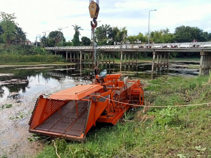 คณะผู้บริหาร ลงพื้นที่สังเกตุการณ์ในการนำเครื่องจักรกำจัดวัชพืชลงแม่น้ำจาง บริเวณลานหลุก หมู่ที่ 12 ตำบลนาครัว เพื่อดำเนินการโครงการคลองสวยน้ำใส กำจัดผักตบชวาและวัชพืชในลำห้วย/แม่น้ำในเขตเทศบาลตำบลนาครัว