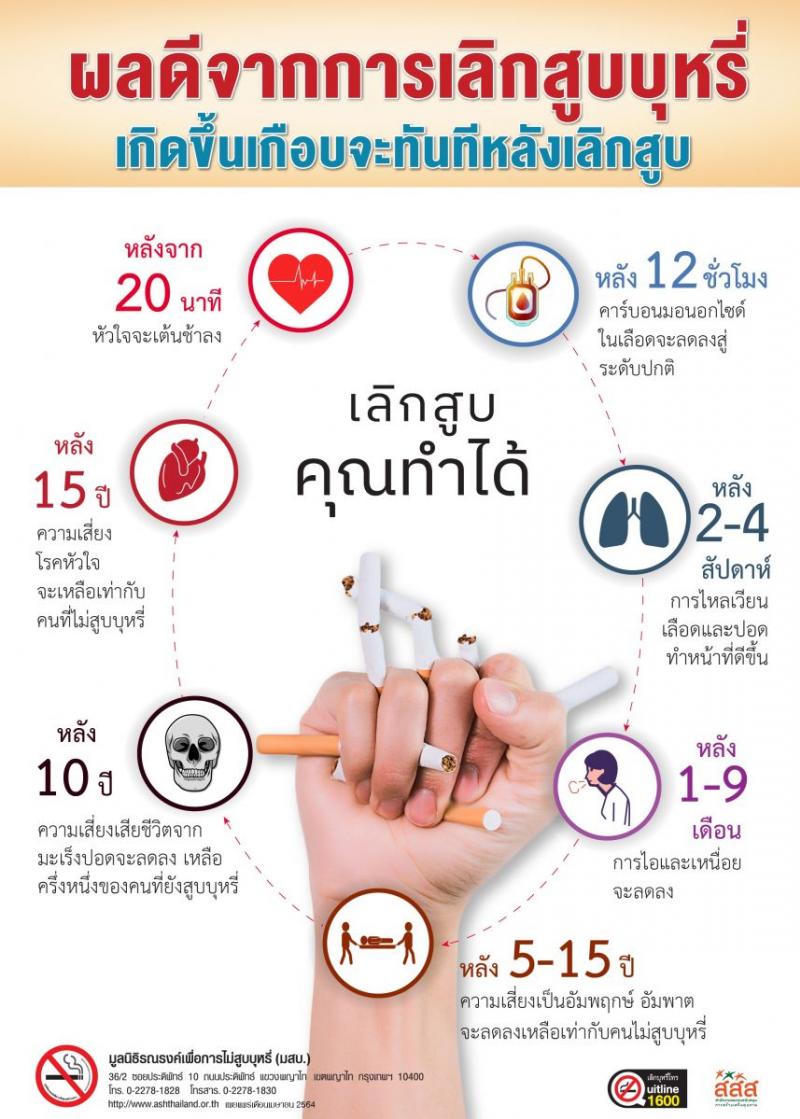 รายละเอียด : สืบเนื่องจากองค์การอนามัยโลกได้กำหนดประเด็นรณรงค์วันงดสูบบุหรี่โลก ประจำปี 2564 ว่า "COMMIT TO QUIT" โดยมีการตั้งเป้าให้นักสูบอย่างน้อย 100 ล้านคนทั่วโลกสามารถเลิกสูบบุหรี่ได้ในปี 2564 นี้ สำหรับประเทศไทยได้กำหนดคำขวัญเป็นภาษาไทยว่า "เลิกสูบ ลดเสี่ยง คุณทำได้" นั่นก็เพราะว่า ปัจจุบันนานาประเทศประสบปัญหาการระบาดของโรคติดเชื้อไวรัสโคโรนา 2019 (COVID-19) ซึ่งเชื้อจะทำลายปอด ทำให้ปอดอักเสบรุนแรงการสูบบุหรี่ จึงเป็นสาเหตุหลักที่ทำลายปอดและเพิ่มโอกาสเสี่ยงในการติดเชื้อไวรัส ส่งผลให้อาการของผู้ติดเชื้อไวรัส COVID-19 ทรุดหนักได้