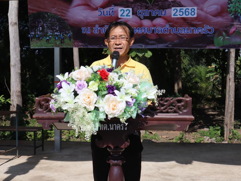 รายละเอียด : วันที่ 21 ตุลาคม 2568 เทศบาลตำบลนาครัว นำโดยนาย อักษร วงศ์ชุ่ม รองนายกเทศมนตรีตำบลนาครัว พร้อมด้วย สมาชิกสภาเทศบาล หัวหน้าส่วนราชการ พนักงาน เจ้าหน้าที่เทศบาลตำบลนาครัว คณะครูโรงเรียนเทศบาลตำบลนาครัว ร่วมกิจกรรม”วันรักต้นไม้ประจำปีแห่งชาติ” พ.ศ.2568 เพื่ออนุรักษ์ ฟื้นฟู ป่าต้นน้ำ และป้องกันไฟป่า ทั้งส่งเสริมให้ประชาชนในชุมชนได้ร่วมกันอนุรักษ์ ดูแล รักษา ทรัพยากรธรรมชาติและสิ่งแวดล้อมชุมชน เพิ่มพื้นที่สีเขียวบนพื้นที่ว่างเปล่าในเขตเทศบาลตำบลนาครัวและช่วยดูดซับก๊าซคาร์บอนไดออกไซด์ที่เป็นสาเหตุภาวะโลกร้อน ณ ลานอเนกประสงค์วัดบ้านหลวง ตำบลนาครัว