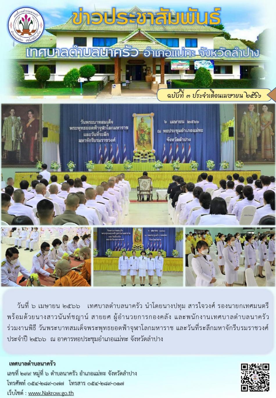 เทศบาลตำบลนาครัว ร่วมงานพิธี วันพระบาทสมเด็จพระพุทธยอดฟ้าจุฬาโลกมหาราช และวันที่ระลึกมหาจักรีบรมราชวงศ์ ประจำปี 2566 [6 เมษายน 2566]