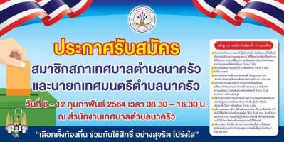 ประชาสัมพันธ์การรับสมัครเลือกตั้งสมาชิกสภาและผู้บริหารเทศบาลตำบลนาครัว